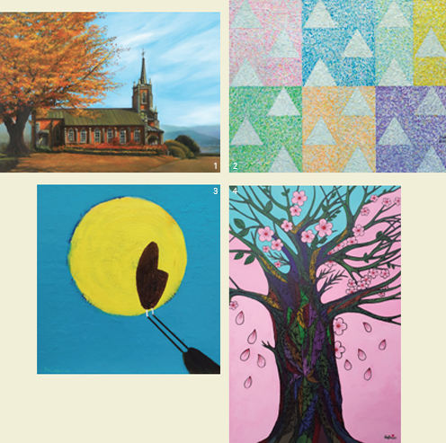 1. Sim, Jeong Ae 作_Gongse-ri Cathedral_90.9x65.1cm_Oil on Canvas_2023 2. Sohn, Moon Ja 作_Mountain Series-covenant_90.9x72.7cm_Mixed Media On Canvas_2019 3. Son, Young Mi 作_Image of Image_37.9x37.9cm_Oil on Canvas_2023 4. Song, Young Joo 作_Cherry blossom-Elegance_60.6x90.9cm_Mixed Media on Canvas_2023