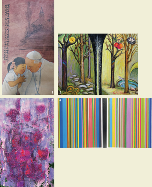 1. Lee, Seung Hee 作_Trace of time_65.1x53.0cm_Oil on Canvas_2023 2. Lee, Sang Yoong 作_Morning pine field_90.9x72.7cm_Watercolor on Paper_2023 3. Lee, Seung Yeon 作_moonlit conversation_53.0x22.0cm_Ink and light color_2023 4. Lee, So Yeong 作_Pieta_116x91.0cm_Oil on Canvas_2023