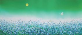 Yum, soon young 作_A grass flower is a flowe_110x50.0cm_Acrylic Gouache & watercolor_2023