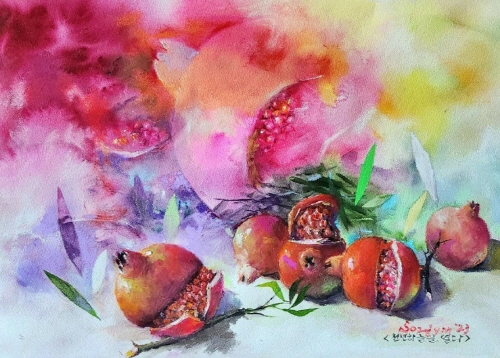 송영명 作_천년 하늘을 열다(석류)_Oil Pastel on Paper_2023