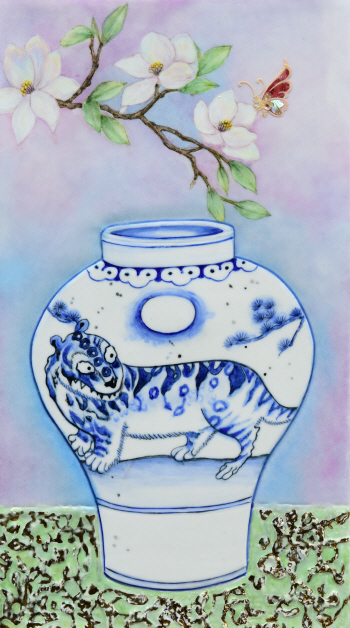 행복_220x395mm_실크도판, 융복합(백금,자개)