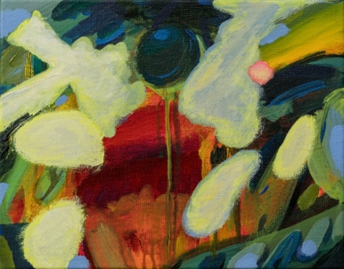 <무지개를 짓는 여자> <모자를 뜨는 여자> <살아내는 순간> <안녕을 비는 낮의 숲> <씨앗을 날리는 그녀와 말라버린 풀 그리고 새, 새, 새>등 쉬고 있는 여자들이 직접 등장하는 그림들에서 ‘쉬고 있다.’는 라는 뜻은 단순히 그냥 휴식을 취한다는 의미가 아니라 그녀들이 오롯하게 자신의 주체적인 마음으로 무언가를 하고 있는 순간 즉 삶을 지속하기 위해서 애쓰는 순간을 뜻한다. 그녀들은 모두 실재하는 내가 애정하는 여성들이지만 곧 바로 나이기도 하다. 바로 그 순간을 그린 그림이 <안녕을 비는 절벽4> 이다. <사라지고 있는 우리1~6>시리즈 들은 식물, 동물, 무생물 등등 온갖 것들의 추상적인 조합이다. 아직 해석되지 않은 세상을 추상적인 것으로 생각하는데 ‘생’과 ‘사’가 뒤엉켜 사라지는 듯 보이지만 결국 새로운 세상을 만들게 된다. <그녀가 중얼거리는 말> 이라는 입체드로잉 시리즈들은 <박제된 빛> 의 입체화이다. 2년 전 동료작가들과 함께한 퍼포먼스 워크샵에서 <박제된 빛>을 유리구슬 등을 사용하여 빛조각을 모아서 순간적인 무지개를 만드는 퍼포먼스로 표현한 적이 있다. 그 퍼포먼스에 사용된 재료가 모조리 <그녀가 중얼거리는 말> 입체 드로잉 시리즈로 만들어 졌으며, 막상 입체로 만들어 빛이 아니라 실제 덩어리가 되고 나니 누군가 듣고 보지 않아도 소소하게 삶의 최선을 다하는 그녀들의 삶, 그녀들의 말 덩어리가 된 것 같아서 제목을 <그녀가 중얼거리는 말> 이라 지었다. 그리고 이 입체 드로잉이 다시 옥빛 채먹으로 그린 <살아가는 중> 이라는 푸른색 드로잉 시리즈가 되었다. 모두 추상처럼 보이는 이유는 ‘생’과 ‘사’가 동시에 존재하는 극명한 모습을 드러내고 싶었기 때문이다. 여기서 푸른색은 새로운 생의 의지로 충만한 경계에 놓인 세상, 대단하지 않은 사람들의 삶을 지속하기 위한 작은 노력들을 의미한다. 결국 돌이켜 보니 예전 처음 태고의 기운을 간직한 “야쿠시마 숲” 에 갔을 때 느낀 그 죽음과 생의 에너지를 계속 표현하고 있다고 생각된다. 그래서 전시 제목이 <숲의 그늘> 이 되었다.