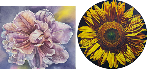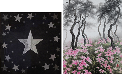 고빈 作_희망메시지_혼합재료_60x60cm_2022 (좌) 김귀인 作_꿈의 향연_54x43cm_한지에 수묵담채_2023 (우)