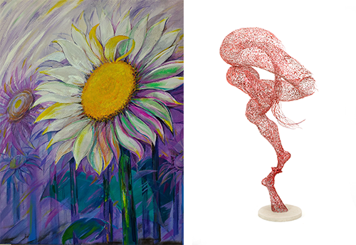 김주복 作_해바라기의 기억_72x60cm_Oil on Canvas_2023 (좌) 김지훈 作_002-2023_철사, 콘크리트에 혼합안료_81x60x142.5cm (우)