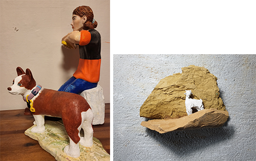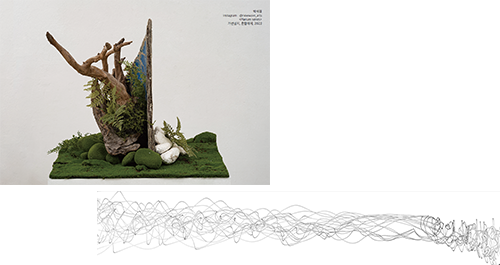 박금화 作_명상 2023_F.R.P, 철, Oil painting_50x40x40_2023 (좌) 박민정 作_Scenery VIII-1_19x16x6cm_Teracota_2023 (우)