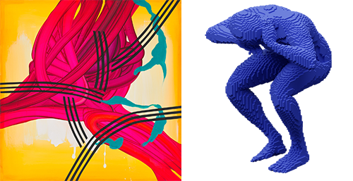 손유선 作_WAVING_91x91cm_Oil on canvas_2022 (좌) 시우조 作_쉬는 시간2_62x62x83cm_플라스틱_2022 (우)