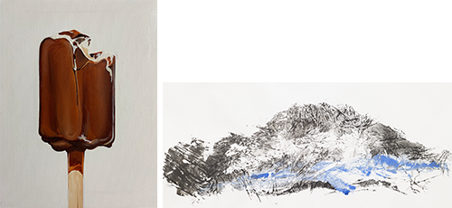 양혜인 作_Ice Cream 1_22x27cm_Oil on Canvas_2023 (좌) 오경미 作_space 주름... 듣다 1_140x65cm_2023 (우)