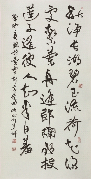 이번 佑松의 개인전에 전시되는 서예작품들은 고전의 법첩을 바탕으로 考究한 서법을 기반으로, 가일층 여러 가지의 서체로 特長을 표현해낸 玉屑의 향연이라 할 수 있다.
