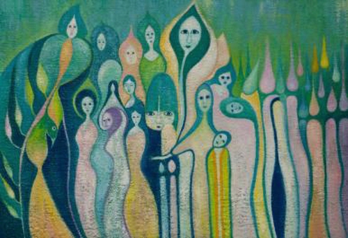 여인들의 소풍_ 합판에 Wax와 유채_80.5×117cm_2022