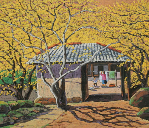 산수유 꽃핀 옛집_53x45cm_캔버스에아크릴_2023