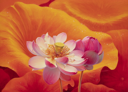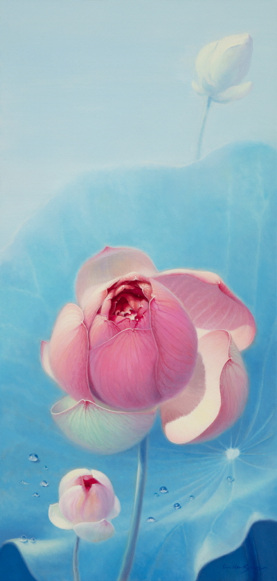 한바탕 비바람이 몰아친 다음 날, 언제 그랬냐는 듯 눈부신 햇살 속에 당당하게 만개한 연꽃도 위화 작품의 주인공처럼 나에게 위로의 꽃으로 뭉클하게 다가왔다. 연꽃을 그리며 위로와 희망의 에너지를 얻는다. 그런 작품을 통해, 자기만의 꿈을 품고 묵묵히 걷고 있는 분들에게 그 여정의 끝에 기쁨이 기다리고 있다는 응원의 메시지를 전하고 싶다. 그대의 오늘도 연꽃처럼 찬란히 피어나길 바란다.