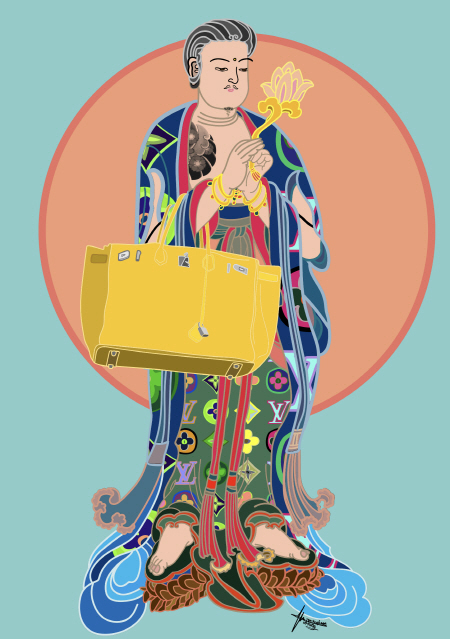 홍작가는 대중에게 친숙한 심슨이나 짱구 같은 만화 캐릭터, 그리고 전통적 민화와 불화의 디지털 버전을 제시한다. 전통 민화를 연상시키는 꽃, 동물 등의 소재를 활용하여 복을 기원하는 길상화(吉祥畵)를 그리기도 하고, 만화 캐릭터를 활용하여 불화를 패러디하곤 한다. 그가 구사하는 가볍고 위트 있는 팝아트의 어법은 진지하긴 하나 때로는 지나치게 전통의 틀에 갇혀 있는 불교미술에 21세기 자본주의 버전을 업데이트해 준다. 온갖 명품에 주얼리를 착용하고 “스웩”을 보여주는 심슨 불상에서 물질만능주의가 팽배한 선진국 한국의 또 다른 모습을 읽을 수 있다. 본디 불교의 교리는 제행무상(諸行無常), 제법무아(諸法無我)를 깨닫고 열반적정(涅槃寂靜)을 추구하는 것이다. 하지만, 오늘날에는 본인과 가족의 세속적 성공을 기원하는 “기복적 요소가 사람들이 종교를 통해 가장 얻고자 하는 것은 아닐까?”라는 질문을 제시하는 듯하다. 게다가 현실종교에 비판적인 이들은 “종교가 비즈니스화” 되었음을 지적한다. 그들에게 이러한 도상은 기존 종교와 물신숭배에 대한 통렬한 비판으로 읽힐 수 있다. 그는 디지털 매체를 사용함에 있어 기존 미술계의 우호적이지 않은 시선과 평가를 느끼며 일종의 카르텔을 느꼈다고 한다. 그러나, 현대 미술에서 뒤샹의 레디메이드, 앤디 워홀의 만화 캐릭터와 <브릴로 박스>, 백남준의 비디오 아트, 그리고 제프 쿤스의 작품을 알고 있는 이들은 기존의 미술의 개념에서 벗어나 미술 자체를 새롭게 정의하는 것이 현대 미술의 한 경향임을 이해한다. 미국의 팝아트 뿐만 아니라 일본의 무라카미 다카시와 나라 요시토모 등의 예에서 알 수 있듯이 서브컬처 문화는 현대 미술에서 이미 확립된 경향으로 받아들여지는 이때, 주제적 측면이나 매체적 관점에서 디지털 미술을 평가절하하는 관점은 매우 시대착오적이다. 반면에 기성세대에게는 이러한 경향이 그들에게는 접근하기 힘든 젊은 작가들과 그 애호가들이 새로이 형성하는 대중성의 카르텔처럼 보일 수 있다.