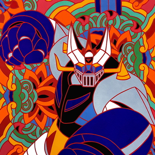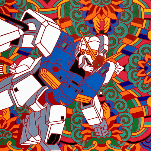 2. 이번 갤러리 무우수에서 소개되는 5인의 젊은 작가들의 작품들 그 양식적 측면에서 주로 팝(pop)적 속성이 강하면서도 일부는 전통 기법, 색상과 소재를 택한다는 점에서 흥미롭다. 아울러 이들 작가는 각각 자신의 방식대로 기존 카르텔에 대응하는 방식을 제시한다. 박종희 작가는 그가 어렸을 적부터 친숙했고 좋아했던 만화영화 속 로봇 캐릭터를 전통적 단청무늬를 배경으로 그려낸다. 마징가, 그레이트 마징가, 건담, 그리고 태권브이라는 소재는 과거 남자 어린이들의 가장 좋아했던 만화 주인공들이다. 그런데, 그는 그토록 좋아했던 로봇 캐릭터들이 예외 없이 일본 만화 주인공이라는 사실, 그리고 자랑스러운 “무적의 우리 친구 태권브이”가 일본 만화 캐릭터를 표절한 것이라는 일각의 주장을 접하고는 충격을 받는다. 과거 불행했던 역사에서 유래한 대중의 강력한 반일정서 카르텔은 그가 즐기며 자랐던 만화의 캐릭터마저 부정하게 한다. 따라서 그는 작품 속에 한국의 전통 단청 문양 속에 일본 로봇 캐릭터를 위장해야만 하는 상황에 놓인다. 한국의 본격적인 근대화가 일본 제국주의의 강제 병합과 동시에 시작되었다는 사실은 대부분의 한국인에게 작가가 겪은 것과 같은 곤혹스러운 딜레마를 준다. 현대 한국의 법률, 행정, 교육, 의학 등의 학술 및 전문 용어의 상당 부분은 식민지 시기에 도입된 일본식 한자어다. 서양에서 시작된 ‘근대’의 보편적 제도가 이 시기에 비록 식민지 통치를 위해 선택적, 제한적으로 행해졌지만, 한반도에서 실행되었다는 것 또한 역사적 사실이다. 게다가 대한민국 정부 설립 이후에도 6,70년대 고도성장기에 자동차, 조선, 철강 등의 중화학 공업 발전 이면에 일본 대기업의 기술 및 자본의 협력이 있었다. 박종희의 가볍고 팝적인 작품 속에는 이러한 일본에 대한 복잡한, 역설적이고 양가적(ambivalent)인 사실과 정서가 함축되어 있다.