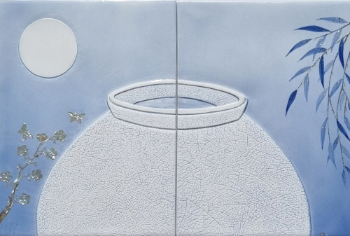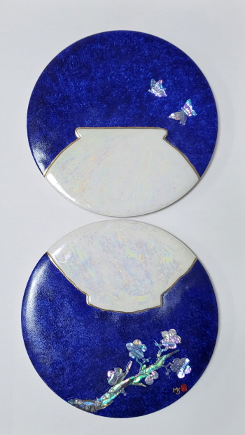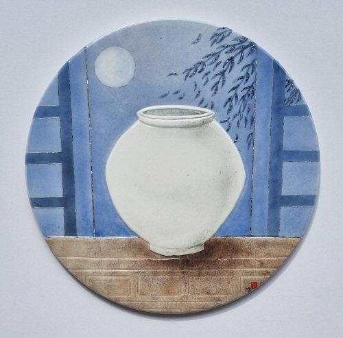 달항아리의 봄_42x21cm_Painting on ceramic, 1250℃, 800℃, Gold, 자개, Lustre_2022