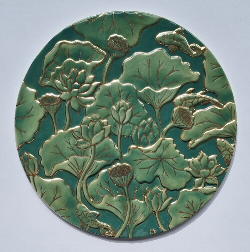 수련3_30cm_Painting on ceramic, 1250℃, 800℃, Gold_2023