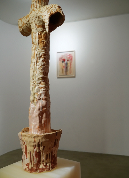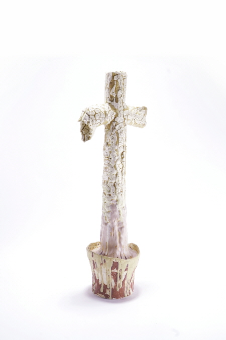 자라는 십자가(Growing Cross), 2023_조형토에 유약, 고화도 소성(Glazed ceramic)_75x26x19cm