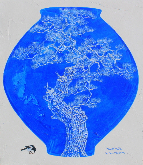 솔을 품은 달항아리_116.7x91.0cm_Acrylic, oil on korean paper on canvas_2023