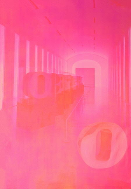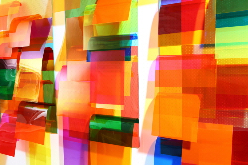 시트지로 만든 색면 구성의 작품들은 캔버스의 네모난 틀에 한정하지 않고 모듈로 제작되어 벽면의 오브제 형태로 걸려 전시장 공간 확장을 꾀함으로써 회화의 이미지가 고정된 캔버스 틀에 있는 것이 아니라 일상성의 맥락으로 시트지를 이용한다. 또한 보드나 판넬 위에 반투명의 필름지가 덧붙여 지면서 형태와 빛은 고정된 것이 아니라 바람이나 장소적 특성에 따라 흔들리고 감각의 혼돈이 일어나는 움직이는 매체로 거듭난다. 빛이 겹쳐지고 흩어지는 반투명 필름지의 설치 작업물들은 보는 이들에게 잠자는 무의식을 일깨우는 각성의 회화 매체로 다가와 추상회화의 확장된 형식을 취하면서, 동시에 회화와 일상의 경계를 허물어 회화의 폭을 넓히는 감상의 기회를 가져다 준다. 이번 전시는 오랫동안 도시를 그려오면서 느낀 인공적인 빛과 도시 속 삶의 공간을 심도 있게 탐구하는 동시에 캔버스 위에 시트지 레이어가 중첩되고 오려지는 캔버스 평면의 매체적 특성을 다양한 형식으로 보여주고 있다.