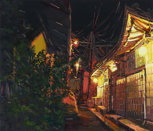 풍경을 그리는 그림에는 우리가 담고 싶어 하는 이미지가 반영된다. 르네상스 시대에는 종교적 이상향에 가까운 낙원과 닮은 자연이 그려졌다면, 점차 현실 세계를 그리는 그림들이 사람들에게 큰 위로와 감동을 주면서 이제는 현실의 아우성들이 캔버스를 채워가고 있다. 나의 작업도 도시의 ‘간판 sign boards’을 그리기 시작한 작업 초기부터 한국의 일상적인 현상들을 캔버스 위 ‘접착 시트지 adhesive sheet paper’라는 재료를 이용하여 붙이고 그리고 오리는 행위를 통해 도시의 흩어져 있는 상념과 이미지들을 표현해 왔다. 이번 전시에는 회화적 그리기에서 벗어나, 상당 수의 작품들은 시트지의 색면성과 오려 붙이는 접착 가능한 특징을 이용하여 판넬 및 아크릴 보드를 이용하여 반투명 필름지가 투영되는 색의 향연을 연출한 작품들이 대다수이다.