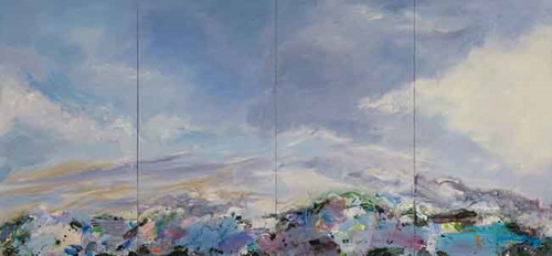 신용재 作_산은 팔레트가 되고 하늘은 그림이 된다 2022_Acrylic on wood panel_227.4x488cm