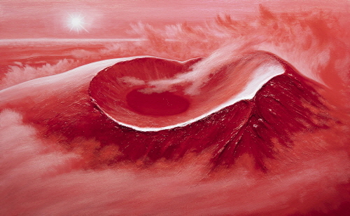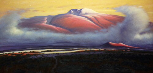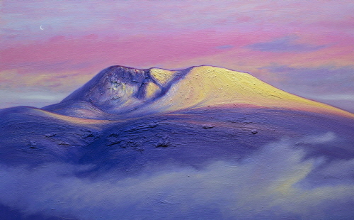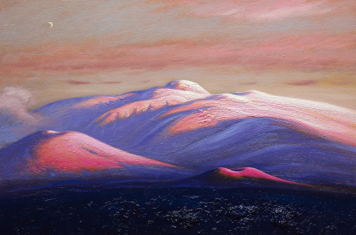 96년 2월 어느날...강한 이끌림에 마주한 붉은 한라산은 마치 운명처럼 나의 작품에 중심 소재가 되었다. 한라산의 신비와 숭고하고 아름다운 자태와 나의 내면으로부터 오는 존재감을 동시대를 살아가는 모든 이들에게 희망과 꿈을 한라산을 통해 전달하고 싶었다. 오늘도 은하수가 펼쳐지는 밤하늘의 별들이 백록담에 곱게 내려 앉았다. 한라산은 사랑 입니다.