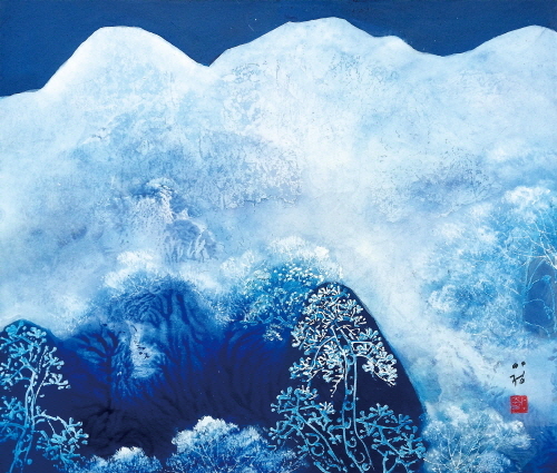 “무위자연(無爲自然) - 쪽빛” 한국 산수의 특징을 표현하기에 적절하고도 효과적인 새로운 기법을 창안하여 한국 특유의 수묵-채색화로 산수화가 낯설지 않고 수묵-채색의 다변화를 이루었다. 또한 화려한 색감은 서양화에 비해 평면적이라는 관념에서 탈피하고, 먹과 색의 조화로움은 수묵의 흑백 세계와 다양한 색채들 사이의 미적 균형을 이루는데 역점을 두었다.