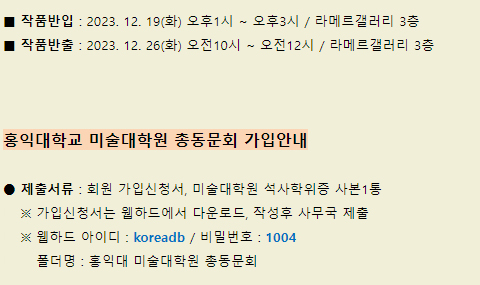 ▶▶ 홍익대학교 미술대학원 총동문회 회원가입원서 다운받기(클릭)