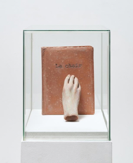 이산오 作_살(la chair)_도자에 색연필, 유리_32x26x36cm_2023