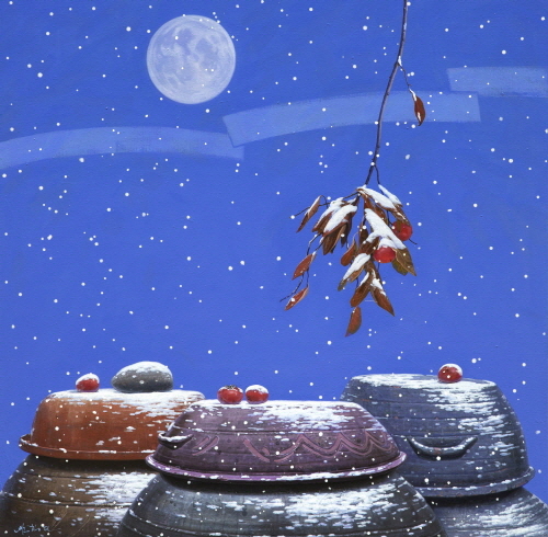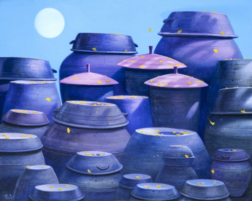 장독이라는 소재가 가지고 있는 민족적이고 전통적이며 토속적인 정서가 화면을 지배하는 가운데 희미한 이미지의 꽃을 등장시킴으로써 어린 시절, 또는 고향에 대한 그리움을 부추긴다. 우리가 잊고 있는 순수하고 아름다운 어린 시절의 꿈과 사랑과 행복의 가치를 되돌아보게 하는 것이다. 장독의 형태미나 조형적인 가치보다도 거기에 연루되는 삶의 정서를 되살려내는 일이야말로 그가 추구하는 회화적인 이상임을 알 수 있다. 더구나 공간, 또는 여백의 확장이라는 점에서 볼 때 전통적인 사실주의와는 엄연히 다른 현대미학의 수용이라고 할 수도 있다. 그러고 보면 그의 작업은 전통과 현대의 접점에 위치한다는 사실을 알 수 있다. 전통적인 습속에서 탈피하여 이 시대가 요구하는 시대감각을 작품에 적극적으로 반영하겠다는 의지의 표명인 것이다. 그의 최근 작업은 확실히 아련한 추억을 되살려내는 힘을 지니고 있다. 그것은 결코 과거 지향적이거나 복고적인 취향이 아니다. 그림이 가지고 있는 설득력이란 다름 아닌 삶의 정서를 보다 풍부하게 가꾸어주는데 있는 것이라면 그의 작업은 이 같은 요구에 순응한다. 시선을 사로잡는 시각적인 이미지와 함께 그 안에 은닉된 내적인 정서 및 의미를 이끌어내는 상징적인 메시지를 중시한다. 그런 의미에서 장독을 소재로 하는 그의 작업은 단순한 소재의 아름다움이나 새로운 조형적인 해석의 차원을 넘어서는 것이다. 형식과 내용을 양립시키면서 그 자신이 추구하는 이상적인 조형세계를 구현하려는 것이다.