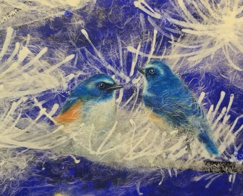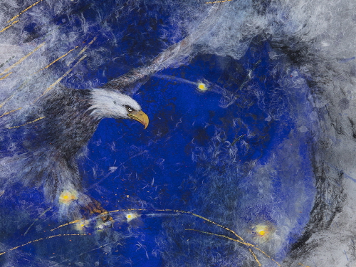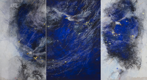 최근 나의 주요한 작업은 푸른 천연 인디고 안료위에 닥종이를 여러 번 얹어가며 표현한 생명나무 시리즈와 현대인을 상징적으로 표현한 독수리 시리즈이다. 화면의 독수리는 치열한 삶 속에 날마다 새 힘으로 힘차게 날아 올라야만, 하는 인류를 상징적으로 표현한다. 때론 사방이 막힌 것과 같은 때에 우리는 하늘을 향해 비상하는 한 마리의 독수리가 되어야 한다.
