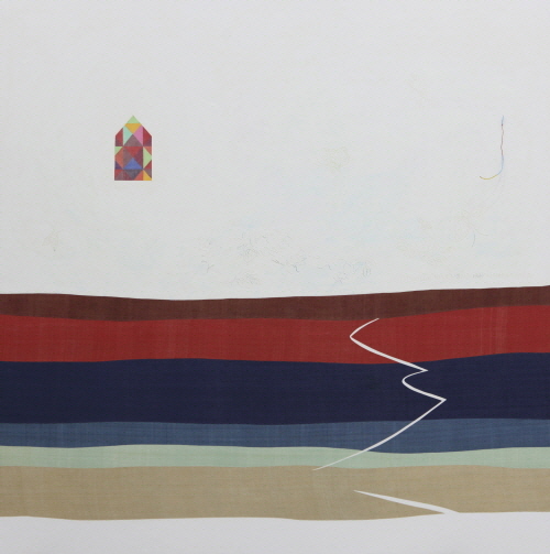 명상-집으로 가는 길_100x100cm_장지,분채,모시,oil paint_2021