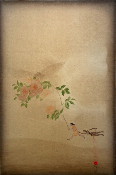 이는 그녀가 한국화의 형식을 취하고 전통적 재료를 사용하는 것에 기인한 바가 크다. 그녀의 작품에 자주 등장하는 전통 산수화의 배경은 관객의 머리에 대자연에 대한 관조적 태도와 이와 연관되는 특정한 문맥을 형성시킨다. 이는 그 배경이 상징하는 동아시아의 전통적 세계관으로부터 형성된다. 인간의 손이 닿기 전 태고부터 존재했던 우주와 대자연 속에 인간은 그저 보잘것없는 작은 부분이며, 이러한 전통사상 속의 자연과 인간과의 관계는 서구의 근대에서 두드러진 인간이라는 주체를 중심으로 설정한 대상화되고 통제 가능한 객체로서의 자연과의 관계와는 다른 것이다. 이러한 대자연의 배경에 작게 등장하는 현대인의 모습은 따라서 전통적 세계관의 틀 안에서 해석될 수밖에 없다. 작가의 화면에 나타나는 인간과 자연과의 관계는 장자의 “소요유(逍遙遊)”를 연상시킨다. 세상의 허튼 근심에서 벗어나 목적을 가지지 않고 노닐면서 훨훨 날아 정신의 절대적 자유를 향유 하려는 작가의 마음을 이를 통해 읽을 수 있다. 이는 모든 사물을 가지런히 하여 대소(大小), 선악(善惡), 미추(美醜)의 구별에서 벗어나 만물을 하나로 보려는 만물제동(萬物齊同)을 추구하는 제물론(齊物論)과 함께 장자 사상의 핵심이라 알려져 있다.