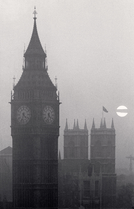 Big Ben and Westminster Abbey, London, England, 1975