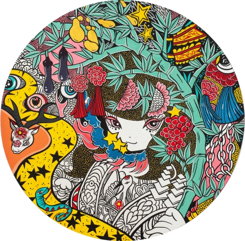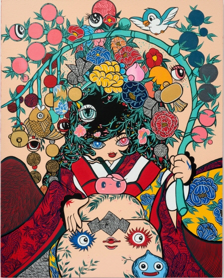 김민수 作_서천꽃밭의 여신_지름60cm_Acrylic on Canva_.2023