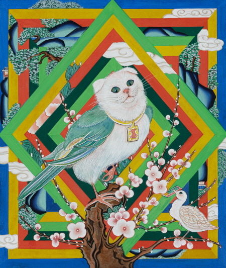 곽수연 作_서천꽃밭 묘룡(猫龍) 묘용_77.5.x54cm_장지에 채색_2023
