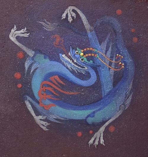 문활람 作_청룡24_20x20xm_닥지에 천연화강말, 천연석채_2024