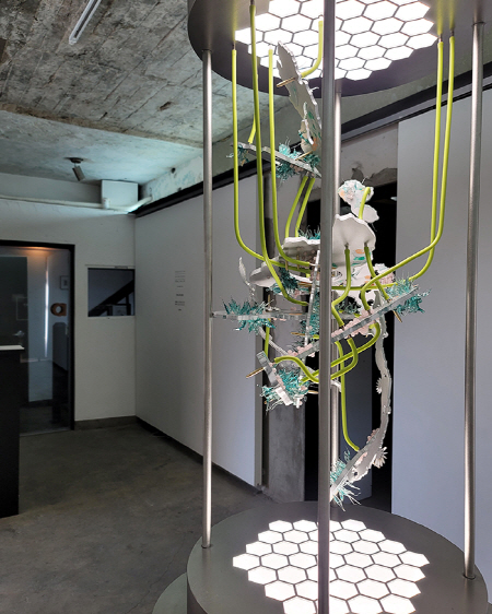 생물과 무생물, 인공과 기계의 형태에서 발견할 수 있는 특정 구조를 해체, 중첩, 변형하여 재조합된 상상적 대체물을 보여 주는 것이다. 무엇인지 알 수 없는 이것의 형태는 자연을 모방한 은유적 상징물이나 의인화된 기계들과는 분명히 구별되며, 현실과 가상이 만나는 경계의 지점에서 합성된 생체모형이라고 말할 수 있다. 세포, 동물, 식물, 혹은 광물질의 파편이거나 소리와 빛일 수도 있으며, 하나의 개체에서 군집을 이루는 집합체가 될 수도 있다.