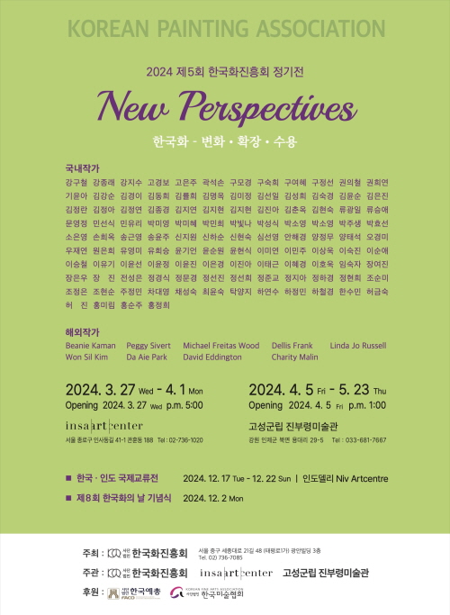 아름다운 봄기운의 시작과 함께 (사)한국화진흥회에서는 2024 한국화진흥회 정기전 및 순회전이 “한국화-변화·확장·수용”이라는 제목으로 3월 27일부터 인사동 “인사아트센타”를 시작되며, 4월에는 진부령군립미술관에서 열립니다. 코로나19로 인하여 지난 4년 간 우리 문화예술계는 많은 어려움과 고난이 있었지만, 다행히도 일상이 회복되고 문화예술도 활기를 찾으며 다시 발전할 수 있어 참으로 다행입니다.