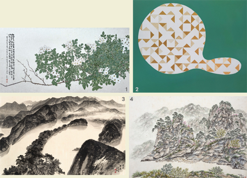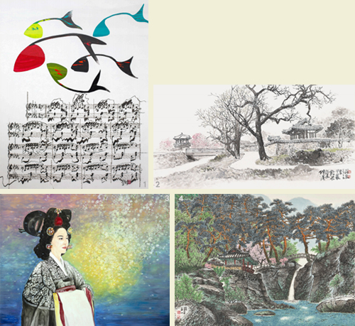 1. 최순녕 作_어가(魚歌) Song of Fish-1_75.5×57.5cm_한지에 수묵과 색_2024 2. 최종국 作_이계정(伊溪亭)_37×71cm_한지에 수묵담채_2023 3. 최화정 作_이화에 월백하고_73×92cm_캔버스에 채색(먹)_2024 4. 홍기윤 作_춘정(春情)_51×69.5cm_한지에 수묵담채