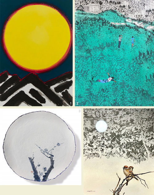 1. 류재춘 作_한국의 달 Korean Moon_90.9×60.6cm_한지에 수묵채색_2024 2. 박능생 作_번지점프(남산에 서다)_75×50cm_화선지에 수묵채색_2023 3. 박석신 作_달을 품다_30×30cm_한지에 수묵채색 에폭시_2024 4. 박성식 作_환희_73×60.5cm_한지에 수묵 채색_2024