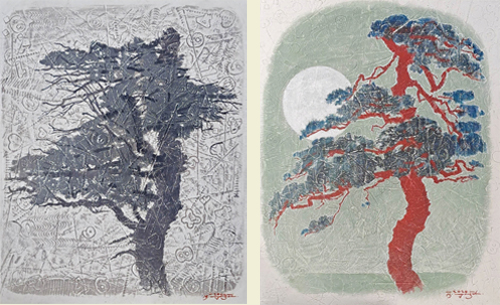 2024 도시나무-자연을 품다_53.0x45.5cm_stone and mixed media on panel (좌) 2024 도시나무-현대를 품다_60.6x50.5cm_stone and mixed media on panel (우)