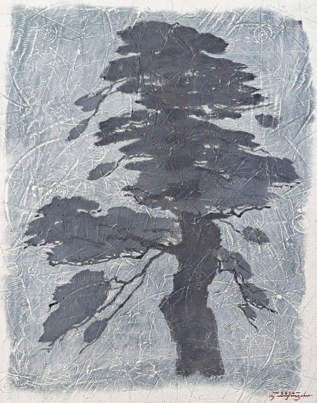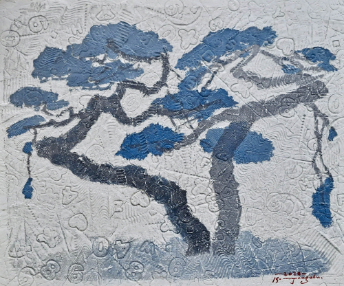 2024 도시나무-세월을 품다_90.9x72.7cm_stone and mixed media on panel