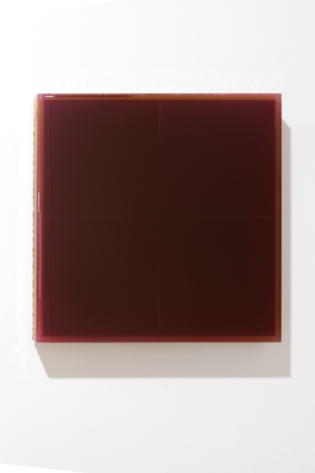 갓 출시한 대형 평면TV의 화면 같은 작품은 오묘한 색상과 손자국 하나 없는 매끄러운 질감으로 보는 이를 압도한다. 더욱이 작품이 기계적인 공정의 산물이 아니라 작가가 방독 마스크를 착용하고 레진몰탈과 합을 맞춘 지난한 작업의 결실이라는 데서 놀라움은 배가 된다.
