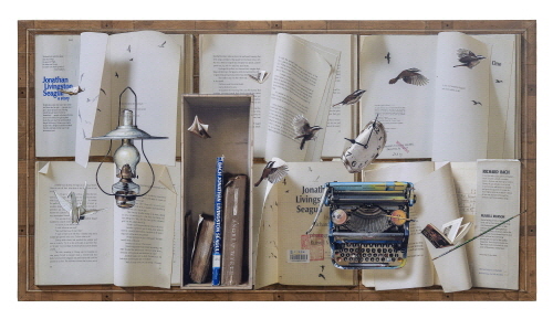 The primary focus of Kacey's artistic creations is literature, particularly ‘books’. A significant portion of his oeuvre that incorporates books appears to illustrate the concept that literature can be expressed through a visual medium. His work often features open books, with their pages filled with vibrant, abstract imagery, suggesting that the stories and ideas contained within these books can be visually represented. Traditionally, a book is regarded as a compilation of paper primarily intended for conveying information via written text. However, Kacey's innovative view of the tangible structure of the book as an entity capable of embodying literary significance leads to a unique visual representation, thereby crafting an innovative artistic realm that intertwines literary elements with visual artistry.