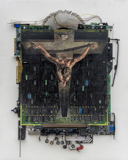 Episode9705(컴맹)_72x63cm_Oil,Acrylic on Computer Hard-ware_1997