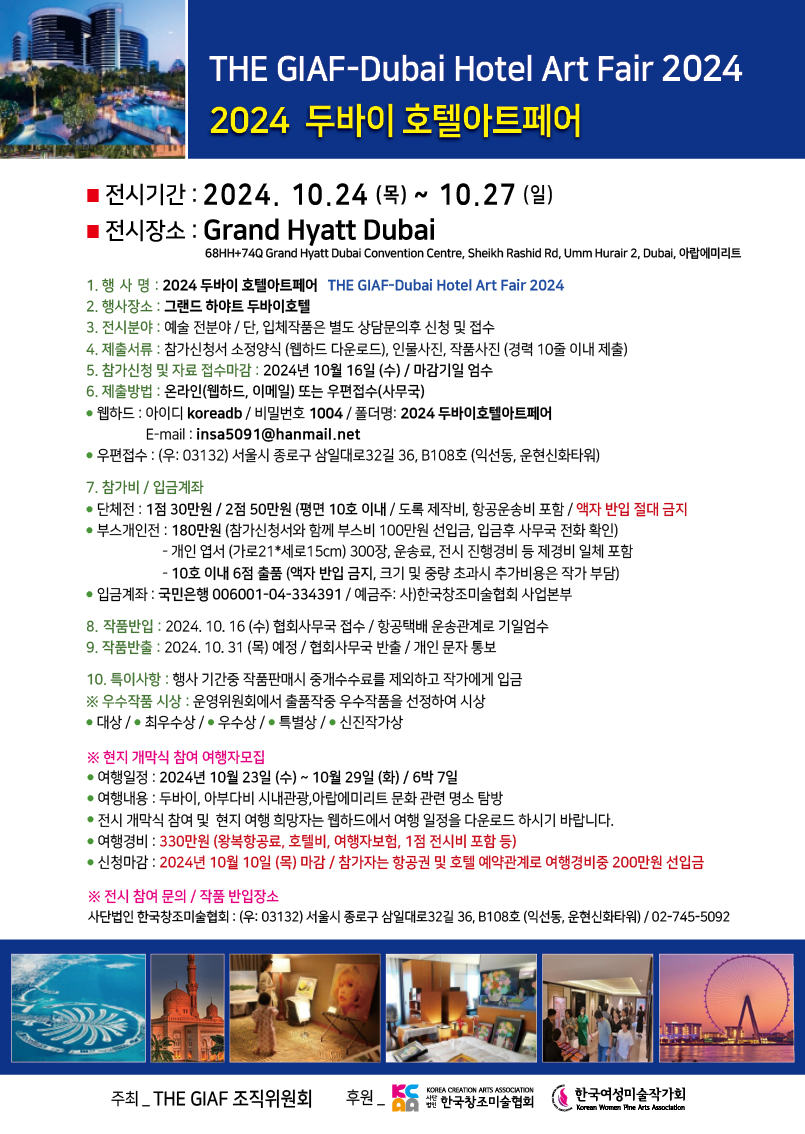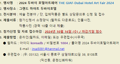 * 전시메일에 등록된 모든 이미지와 글은 작가와 필자에게 저작권이 있습니다. * vol.20241016-2024 두바이 호텔아트페어 |