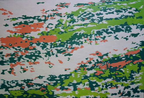 2019년 봄 제5회 개인전을 가졌던 나는 그 후 버즘나무 줄기에 새겨진 플라타너스 화백의 그림을 내 캔버스에 옮겨 그리는 작업에 착수했다. 원통형인 나무줄기를 한바퀴 돌면서 찍은 사진을 살펴보니 대부분이 산과 들과 물, 그리고 거기에 서식하는 짐승과 물고기들이 이루고 있는 생태계를 묘사한 듯 보였다. 이번 전시에 내건 작품들도 대부분 이런 주제에 해당한다. 이 일을 하면서 내 머리엔 이런 생각이 맴돌았다. 도대체 이 나무는 무엇을 어떻게 보고 이런 그림을 그리게 됐느냐는 것이다. 버즘나무의 조상들이 신생대쯤 되는 먼 과거의 어느 때부터 체험한 여러 사항들을 사진처럼 꼼꼼히 기억해 두었다는 건가. 또 이를 유전자를 통해 오늘날의 후손에게 전해주고 있다는 말인가. 오늘날의 후손들은 이를 자신의 피부에 고스란히 재현시키는 희한한 초능력을 발휘하고 있다는 말인가. 그리고 또 한 가지, 사물을 보는 눈은 인간을 비롯한 동물의 전유물인 것 같은데 버즘나무 같은 식물도 외부 세상을 보는 나름대로의 메커니즘을 갖고 있다는 말인가. 이 세상의 모든 존재는 식물이건 동물이건, 눈이 있건 없건 서로를 마주 보고 느끼며 얽혀 지내고 있다는 것인가,