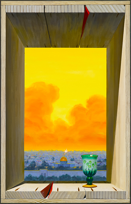 황학만 선생님의 회화는 명상과 통찰의 독자적인 장르를 개척하며 초현실주의적 화풍으로 현실계 너머 존재하지 않는 것들, 혹은 존재를 초월하는 것들로 향한다. “아사셀을 위한 염소”라는 생경한 주제는 창 밖의 내밀한 공간을 성경이라는 창으로 대치해서 현장을 바라보고자 하는 의도이다 성경은 어린양과 함께 또 하나의 재물은 “염소”다. 광야 같은 인생길이 본향을 향한 여정이라 할때 이스라엘 광야시절 하늘에서 내려온 만나와 반석에서 터져나오는 생명수를 마셨던 것처럼, 어린양의 살과 피는 그리스도의 예표다. 그것이 오늘날 교회가 지키는 성찬의식으로써 영구한 의식이다.