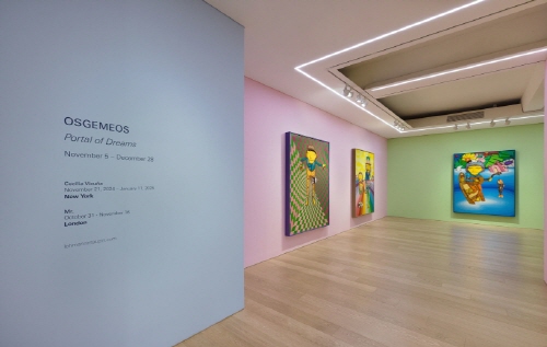 리만머핀은 브라질 기반 듀오 오스제미오스(OSGEMEOS)의 개인전 ⟪꿈의 포털⟫을 개최한다. 십여 점의 혼합 매체 회화 작품으로 구성된 이번 전시는 일란성 쌍둥이인 구스타보와 옥타비오 판돌포 형제가 수십 년의 작업을 통해 함께 만들어낸 기발한 꿈의 세계인 ‘트리트레즈 (Tritrez)’의 세계로 관객을 초대한다. 현재 진행 중인 오스제미오스의 대규모 전시 'OSGEMEOS: Endless Story'가 미국 워싱턴 DC의 스미소니언 허쉬혼 미술관 및 조각 정원에서 2025년 8월 3일까지 열리며, 예술 서적 출판사 리졸리(Rizzoli)에서 발행한 전시 도록이 함께 출판되었다. 이번 전시는 2020년 이태원 현대카드 스토리지에서 열린 '오스제미오스: 유 아 마이 게스트'에 이어 서울에서 열리는 두 번째 개인전이자 리만머핀에서 열리는 첫 전시이다.