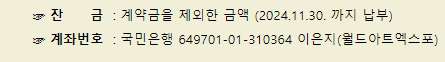※ 잔금 납부 기한인 2024년 11월 30일 이후부터는 참가 신청 철회가 불가합니다. ※ 계약금은 환불 불가합니다.